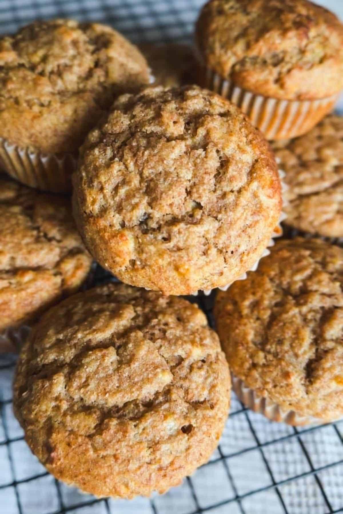 Delicious homemade banana muffins made with fresh milled flour and applesauce, perfect for healthy b.